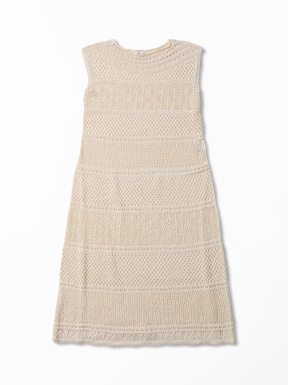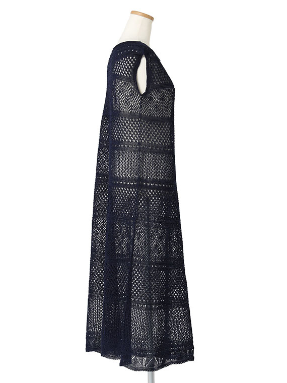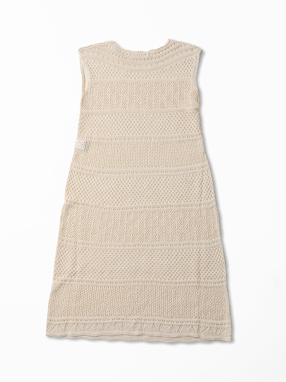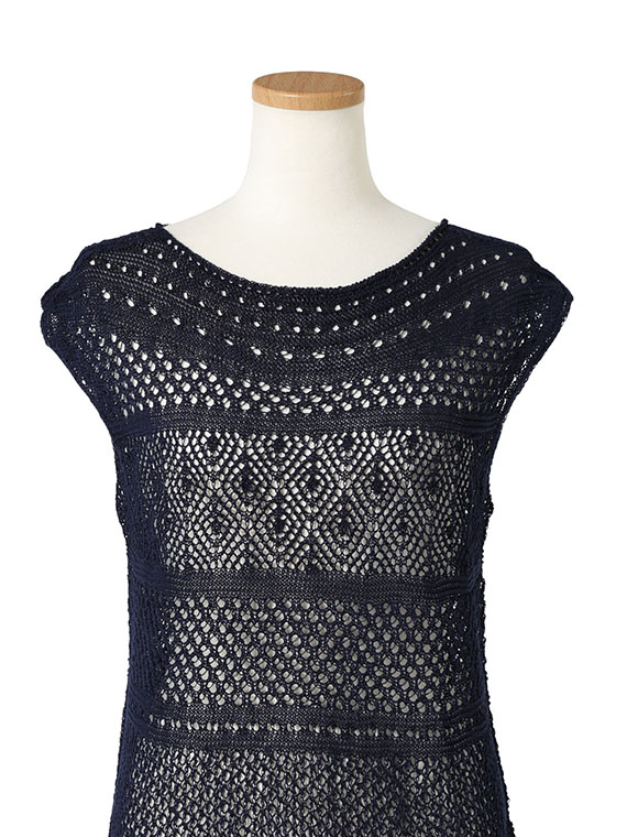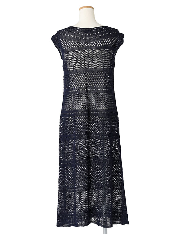 中に合わせる色によって、編み目の表情がドラマチックに変わるのがこのワンピースの醍醐味。