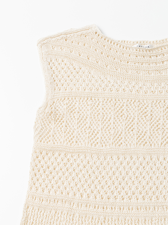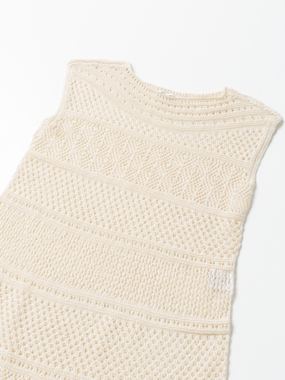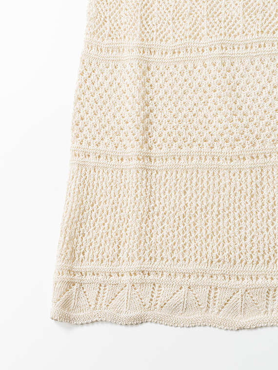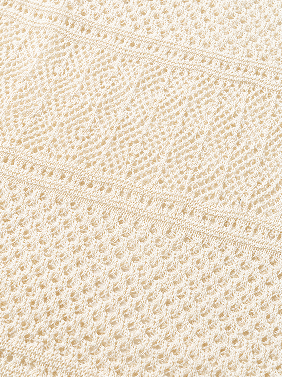 透かし編みによる圧倒的な通気性と、肌にまとわりつかないこの素材感は、夏のお洒落をどこまでも快適にしてくれます。