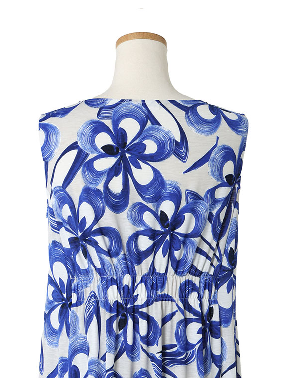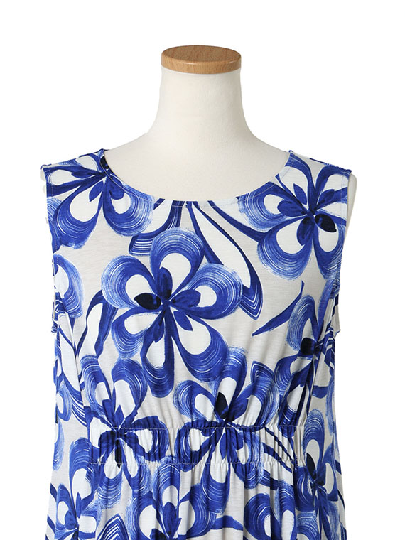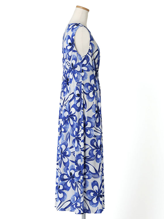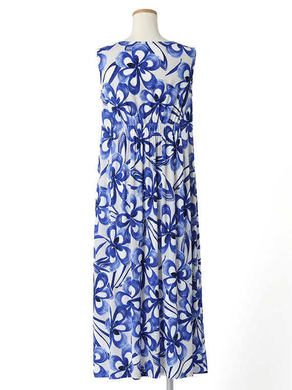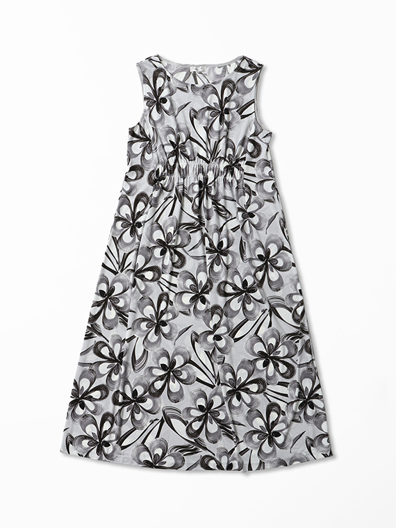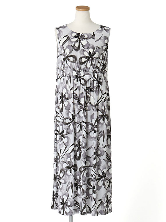ノースリーブのラインが肩周りをスッキリと見せ、お食事会やリゾートなど、少し背筋を伸ばしたい日の装いにもぴったりです。