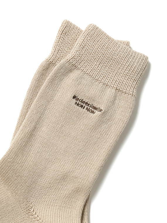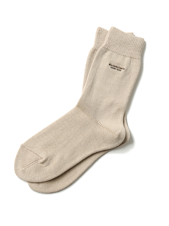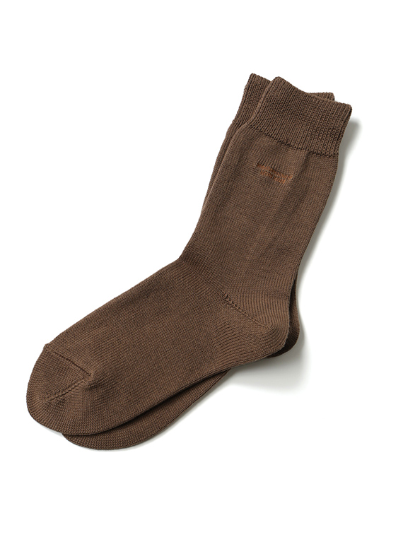 希少性の高い特別な機械を使用してカジュアルながら上品に編み上げ、水平に2段でブランドロゴの刺繍を入れた靴下になります。