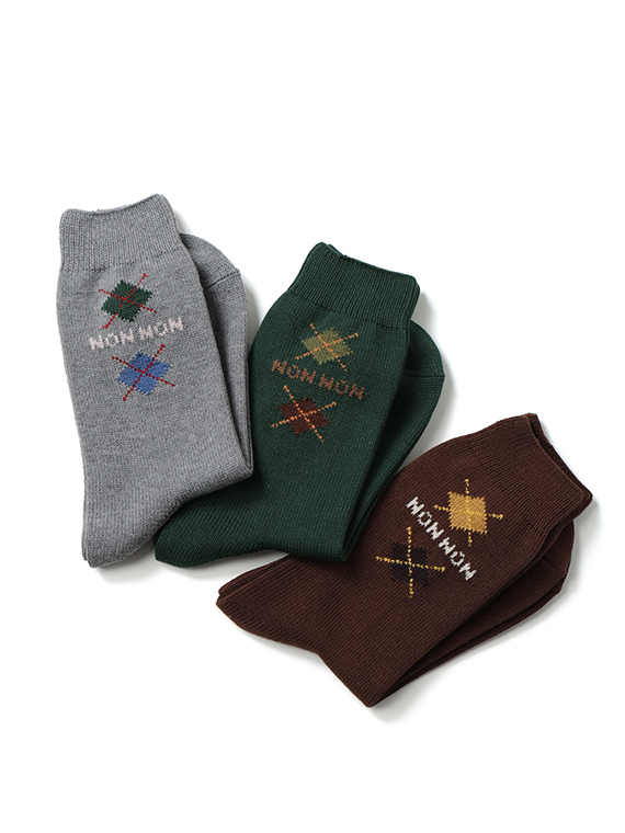 足元からおしゃれに、カラフルな色合いが楽しいNONNONアーガイルソックスです。