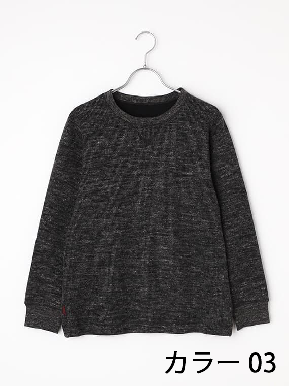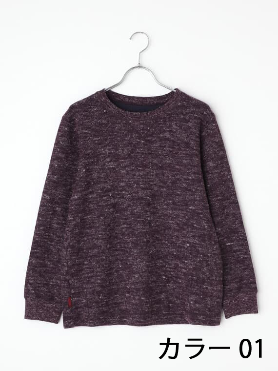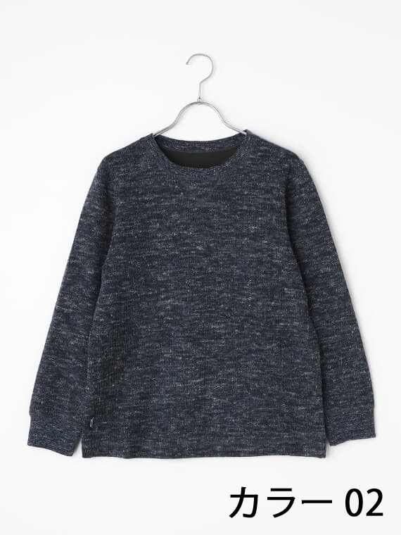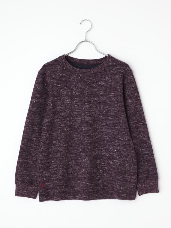 ニットの様な見た目、独特のミックス感と立体感を特徴とする素材を使用したクルーネックトレーナーです。着用感の快適さと、軽やかさをお楽しみいただけます。