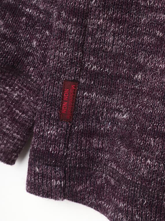シェットランドウールとリネンを梳毛紡績で紡いだ糸と、肌触りの良いコーマ糸の2種類の糸を使用して、クォーターゲージWニットと呼ばれる表と裏でゲージの異なる特殊な編み機で編み立てた生地が出来上がりました。スコットランド北方のシェットランドに生息する羊から採れる貴重なシェットランドウールは、他のウール原料と比較して繊維1本1本が太くて長く、弾力に富んだ風合いがあります。このウールと同様にハリコシのあるリネンをブレンドすることで、バルキー性に優れた軽さと保湿性を併せ持った特徴が生まれます。