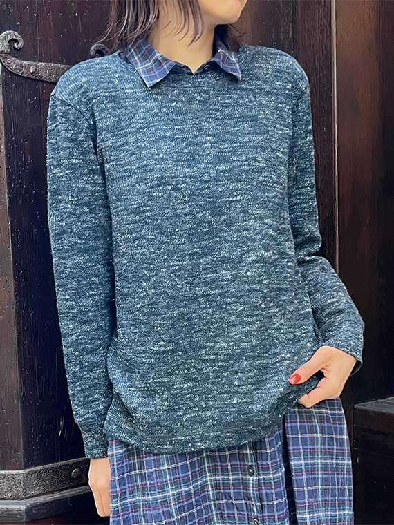 【SALE】ウール/コットン/リネン クォーターゲージWニット接結 クルーネックトレーナー
