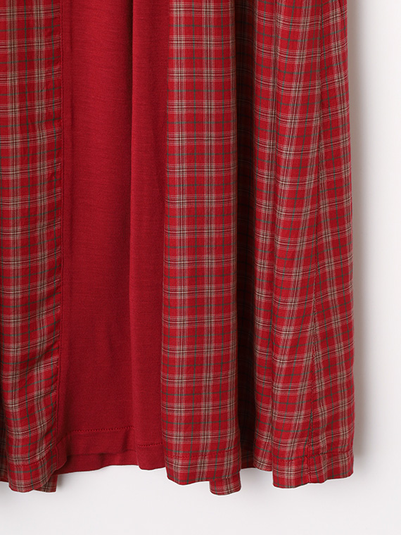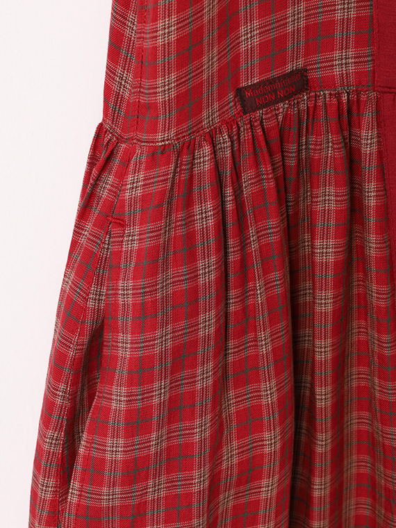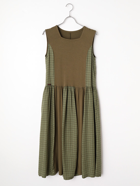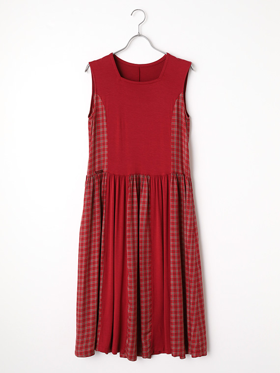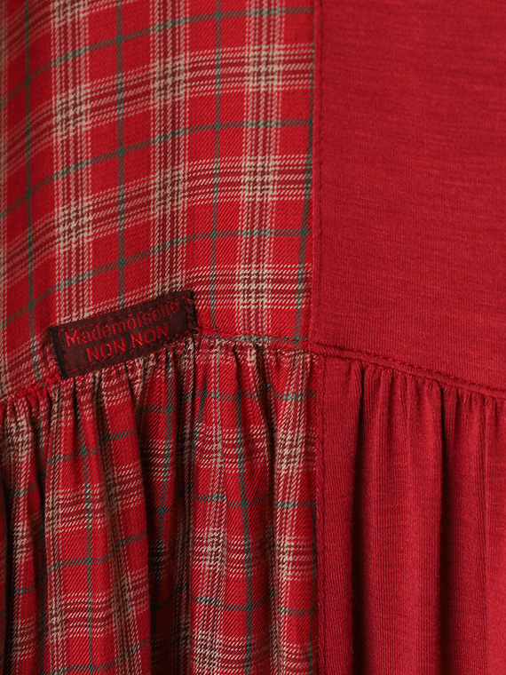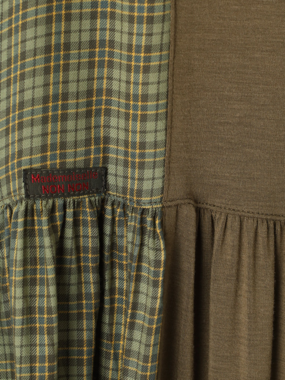 Mademoiselle NON NONオリジナルのカットソーの無地と布帛のテンセルツイルチェックの組み合わせは、流れる様なドレープ性としっとりとした肌に優しい風合いを持つ、特別なデザインのワンピースとなりました。
