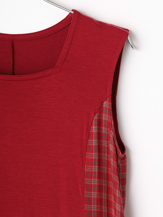 ※前後脇身頃と前後脇・前後中心スカートに、別布のテンセルツイルチェックを使用