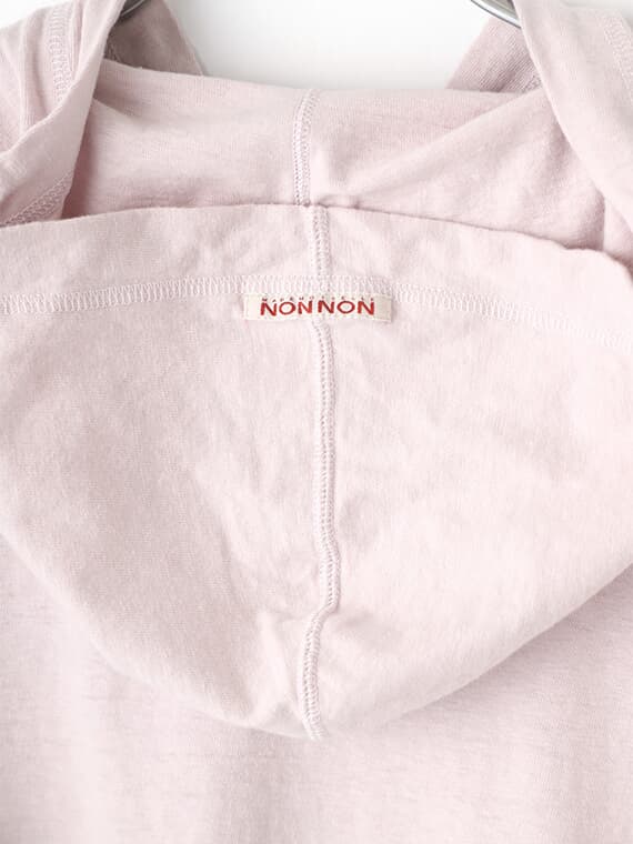ラフィは超長綿糸(スビン、トルファン、アルティメイトピマなど)を作る工程で落とされる繊維の短い未利用綿をブレンドして出来る糸です。こちらは、糸にナチュラルなムラを入れたヴィンテージ感のあるエコな素材です。そのラフィに上質な麻をブレンドしたのがこのモンサンミッシェル&ラフィです。絶妙なブレンドで作られたNON NONだけの完全オリジナル素材です。