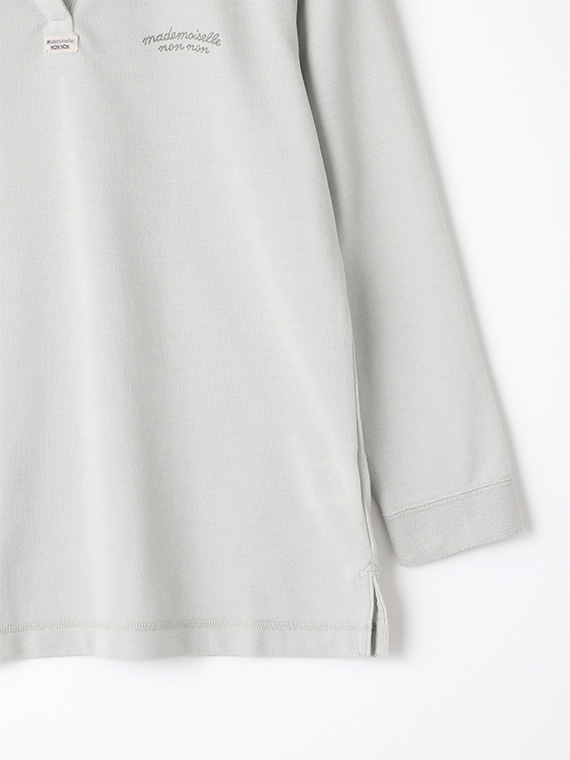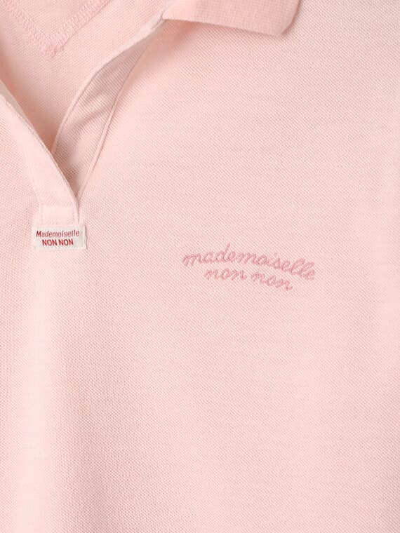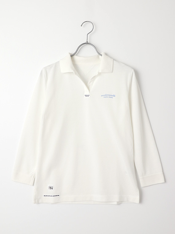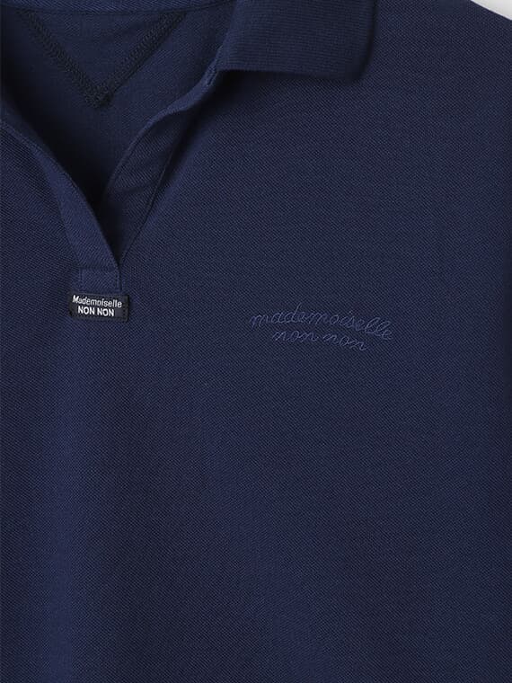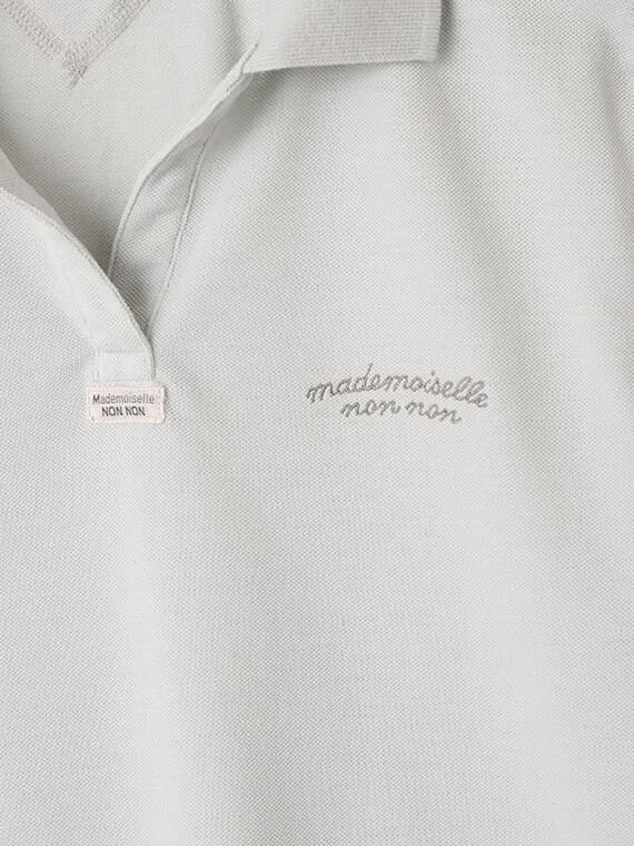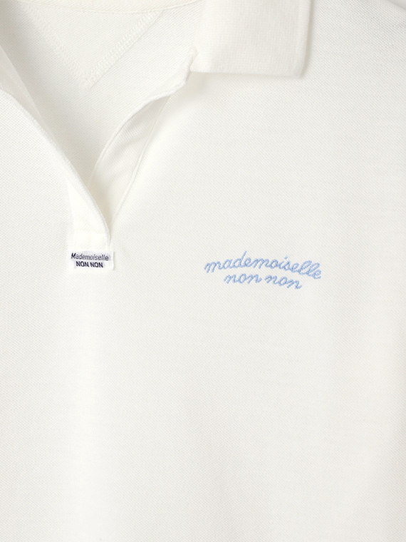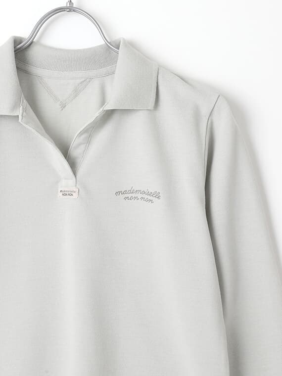 首元はスキッパーデザインで涼しげな印象に。左胸にはmademoiselle non nonの刺繍を施しました。