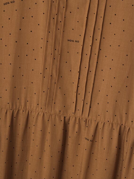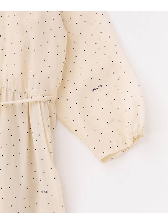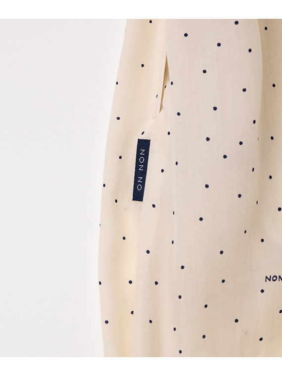 再生繊維(セルロース)で織り上げたブロードに、ドット柄をランダムに配置し手捺染で丁寧にプリントを施したカジュアルな素材です。植物由来のテンセル繊維を使用しているので適度な落ち感とドライタッチがあり肌触りの良い風合いになっています。