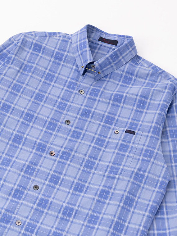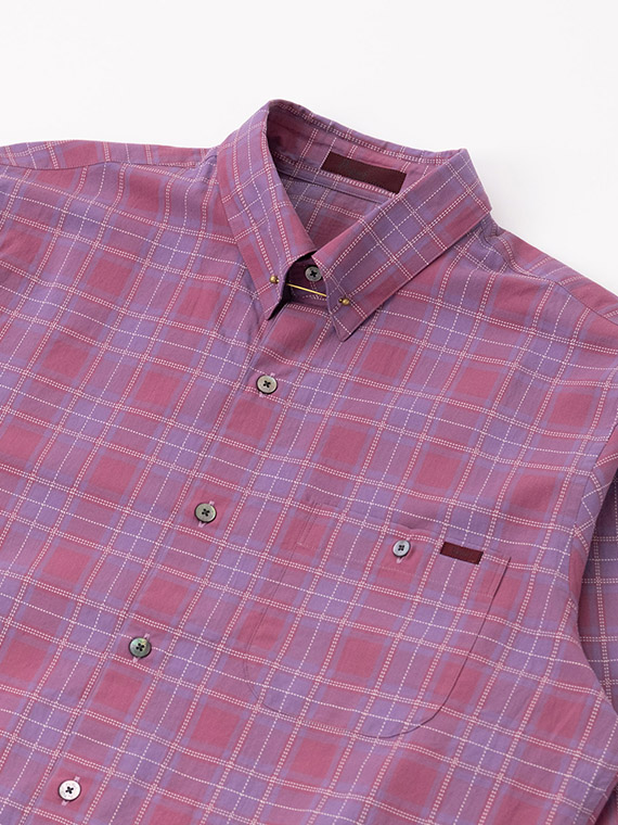 【SALE】ステッチワークブロードチェック ピンホールシャツ