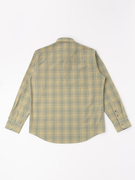 生地は、タテ・ヨコ糸共に繊細な綿60/1をベースに、綿60/2の太めの糸でステッチを入れ込み、昔からあるワークシャツのような雰囲気を表現しました。ベース生地とステッチ糸とのテンション差を上手く織ることは難しく、職人技とも言える技術が必要とされます。西脇市にある特別な機屋で織り上げられた、貴重なシャツが出来上がりました。