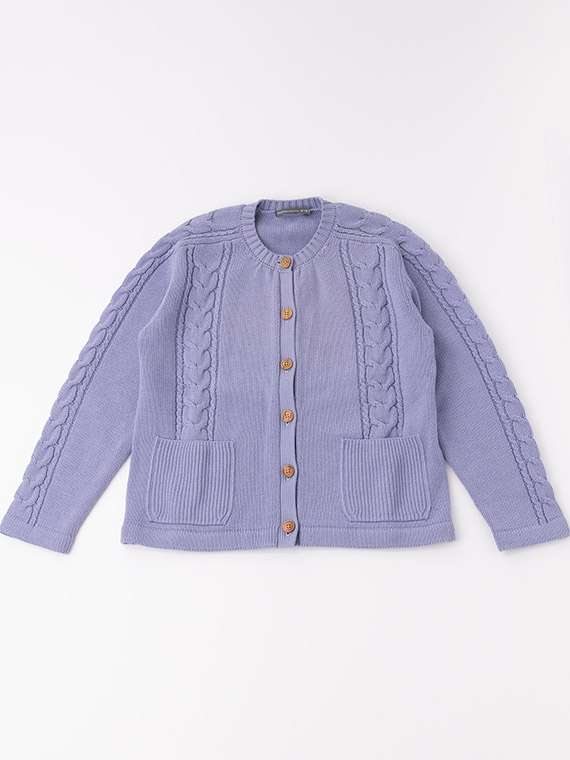 綿とハイバルキーアクリルの混紡糸になります。嵩高性があり、軽くて空気の層を多く含んだ温かみのある素材です。編み立てた際に目が立ちやすく柄がしっかり出る素材です。