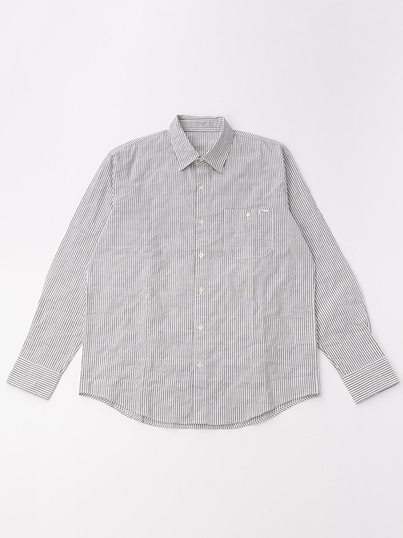 きれいめなストライプに、カジュアル感も加えたシャツ。 さらっとした肌触りで爽やかにお召しいただけます。