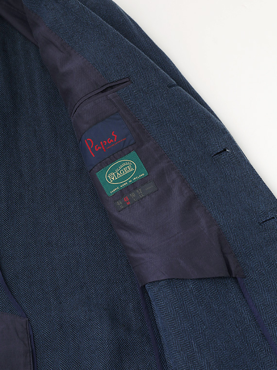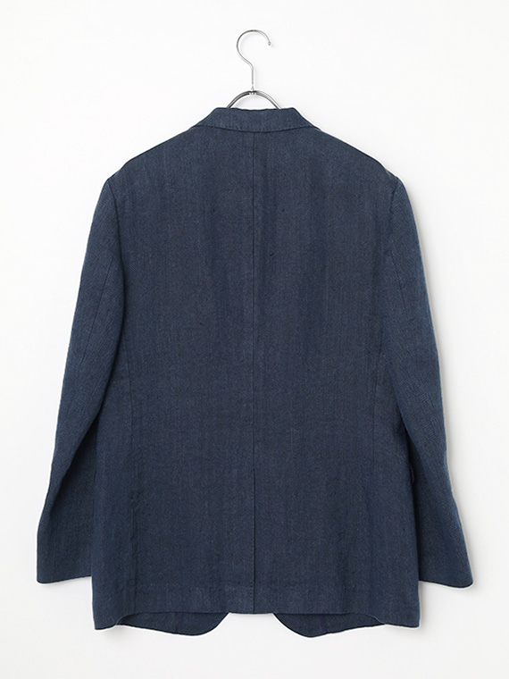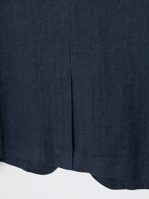 前半裏仕立てで、縫い代はパイピング始末。肩裏・袖裏付き、半造り毛芯仕様により、軽やかさと立体感を兼ね備えた着心地にまとめています。
