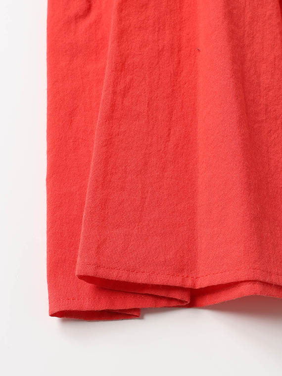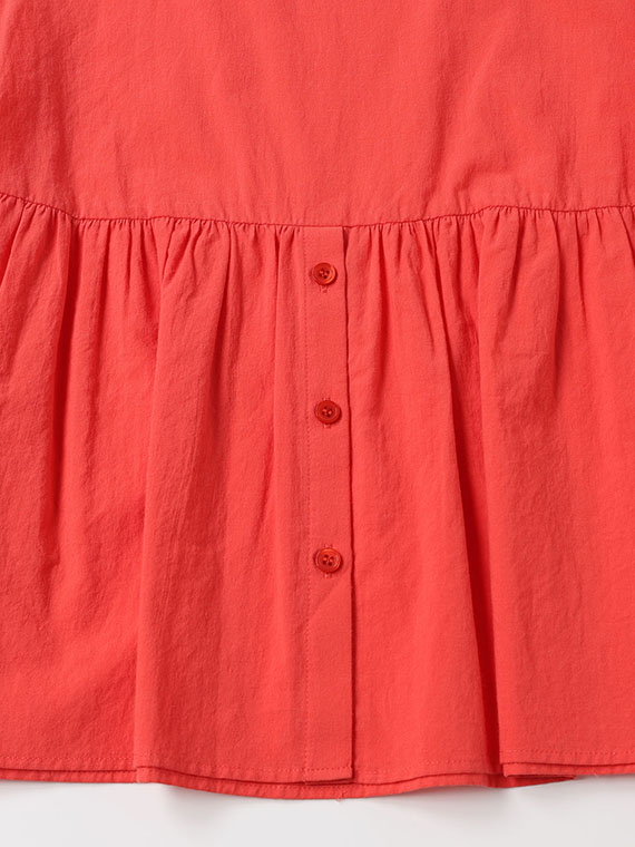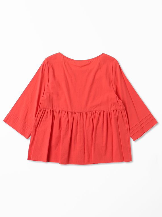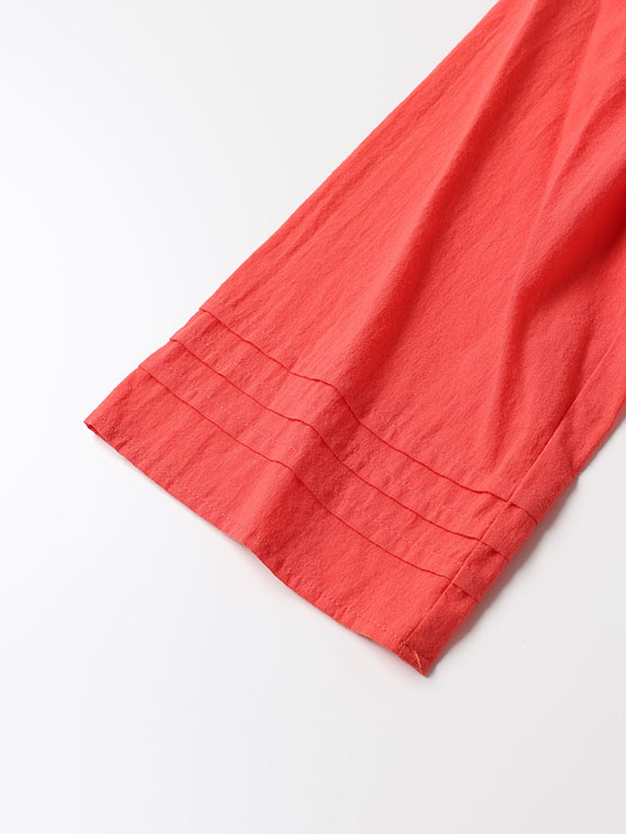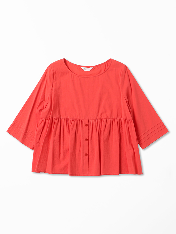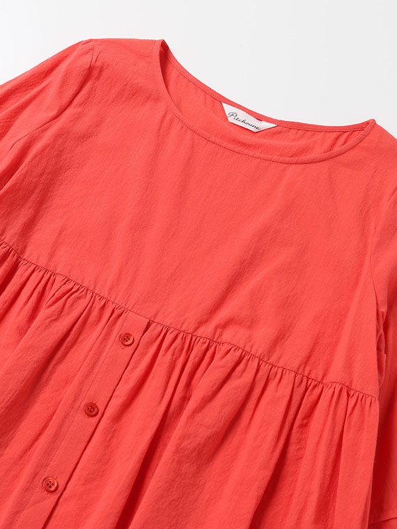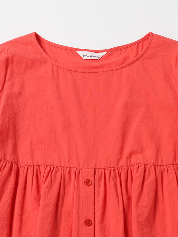 前身頃切替下にはボタンが、風通しの良い筒型の7分袖には3本のピンタックが入り、アクセントになっています。