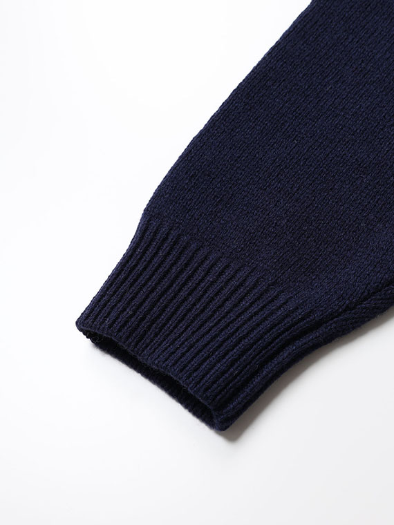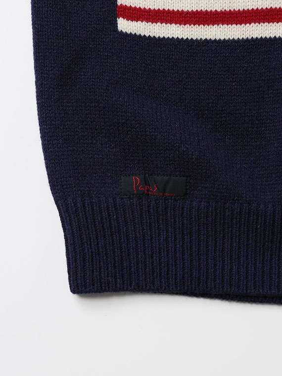 軽くて温かく適度な粗野感が特徴の20.5μのウールを使用しています。今回のインターシャニットは、Re PAPASプロジェクトで回収した製品をもとに、インターシャの柄を仕様・柄共に再現しました。