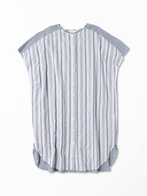 前後でストライプのパターンを変えて、こなれた雰囲気に仕上げました。