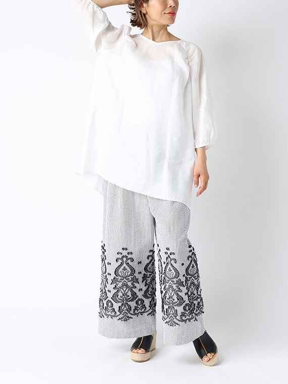 ヨーロッパで栽培された亜麻(フラックス)から作られたリネンボイル生地を使用し、製品染め(シロは製品洗い)を施しています。