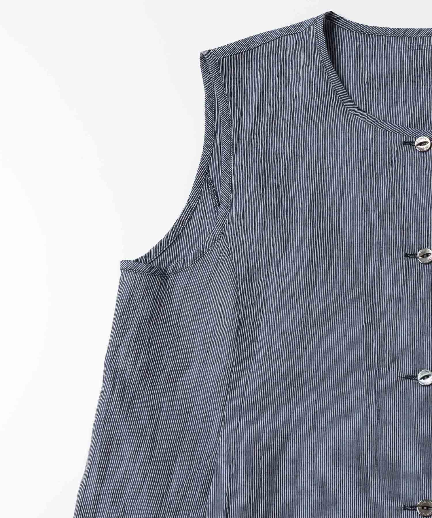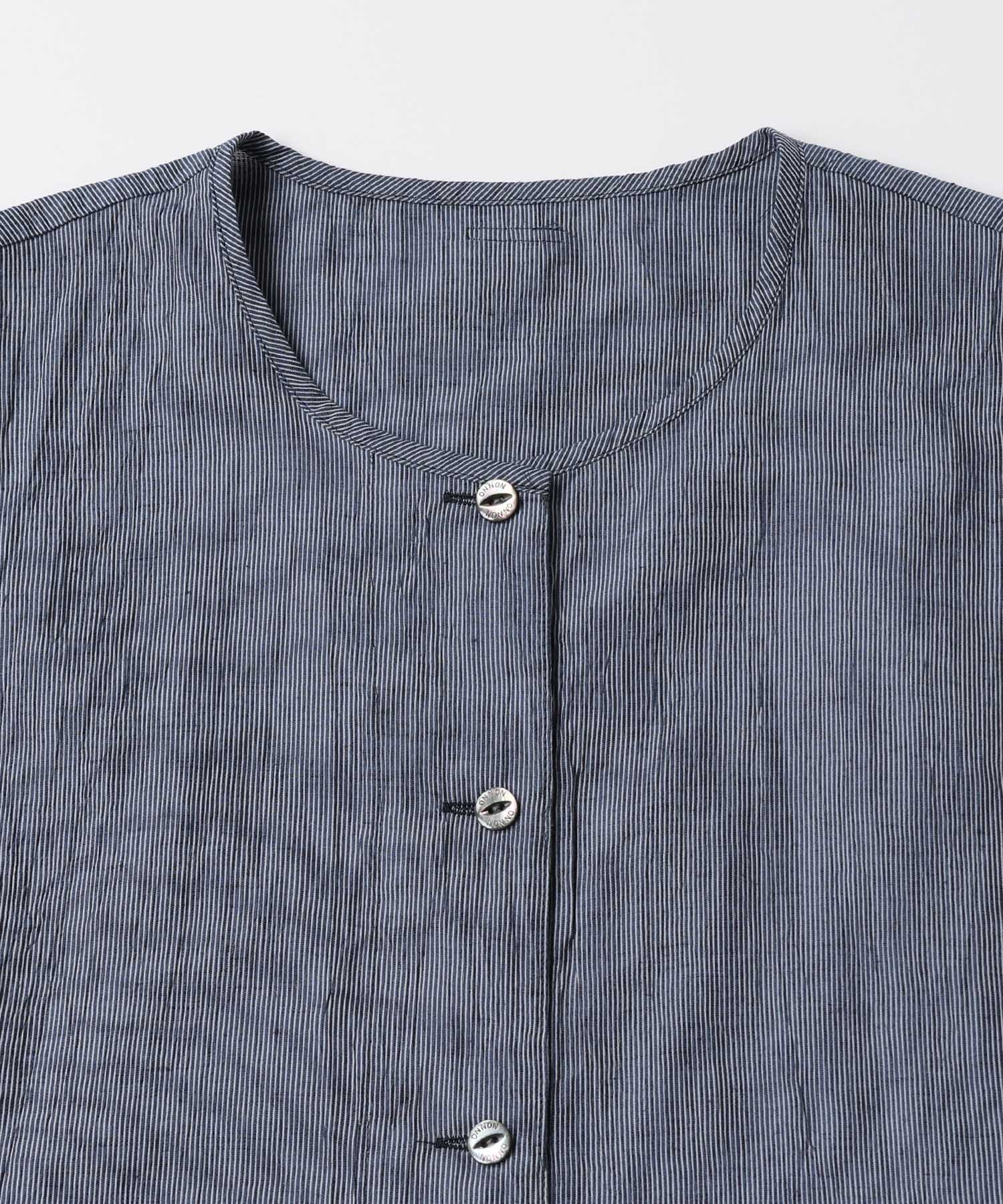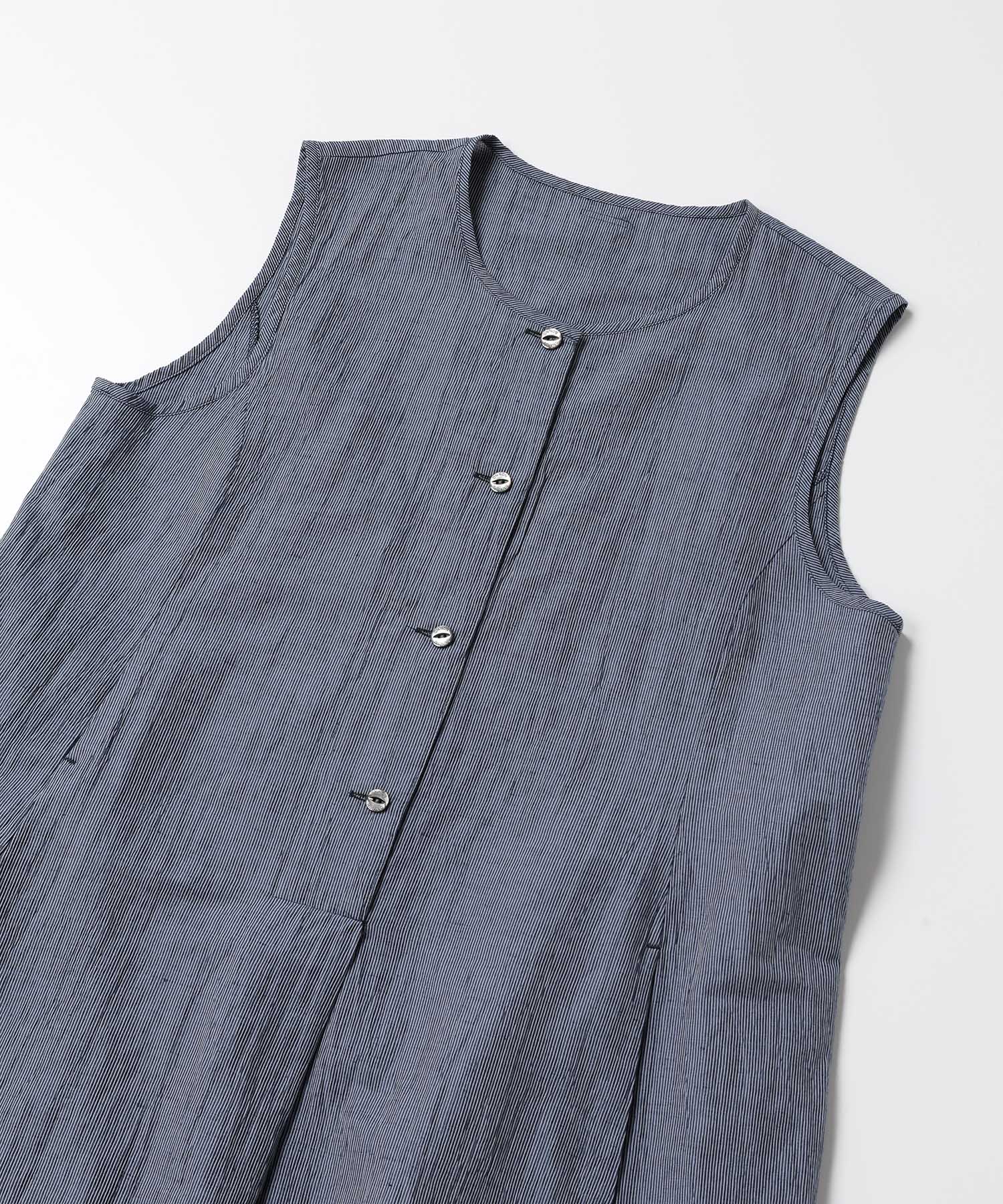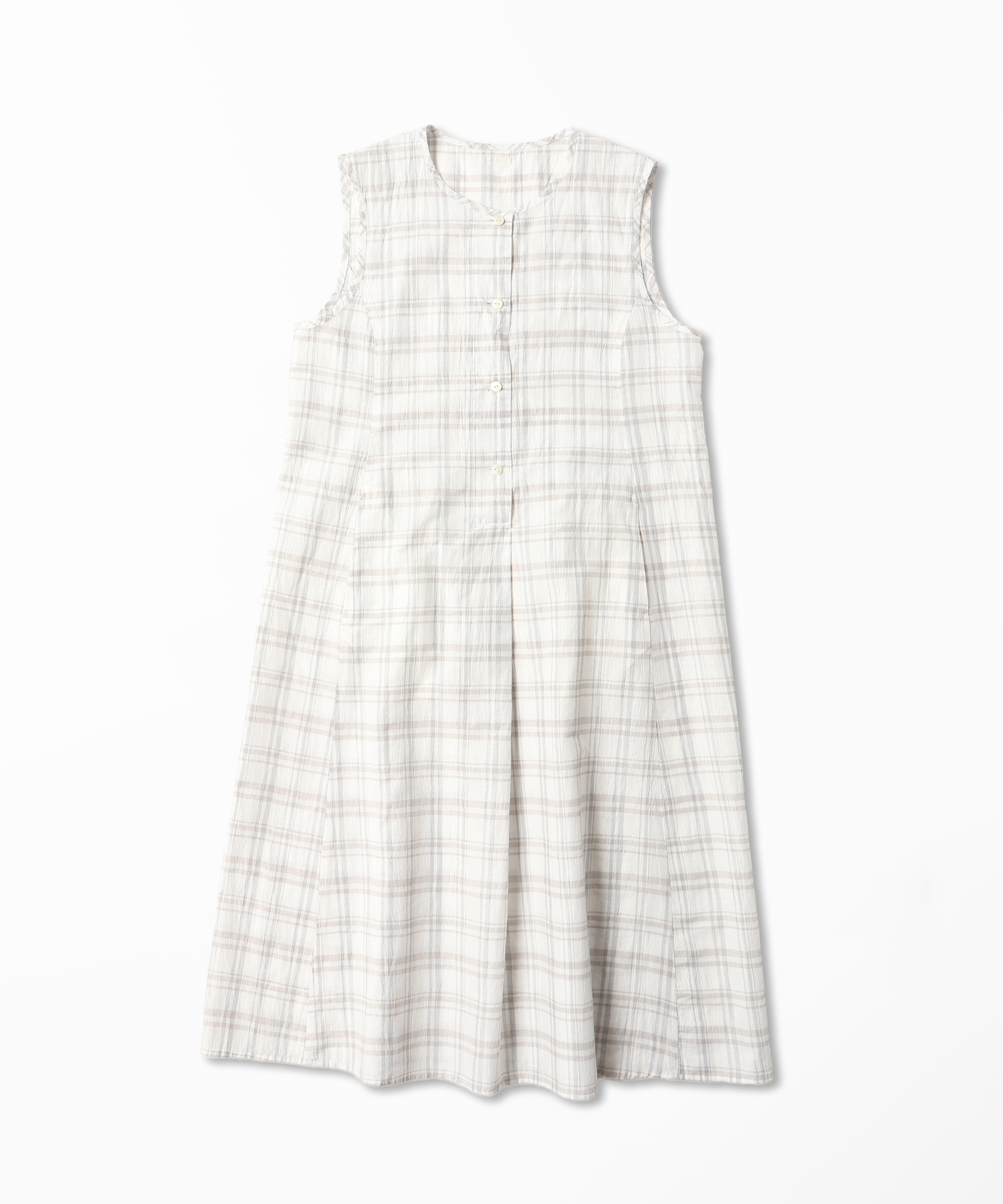 ノースリーブワンピースとしてもご着用いただけるよう、衿ぐりやアームホールの開き具合に注意してデザインしました。肌離れのよい、たっぷりした分量感ですがとっても軽くお召しいただけます。