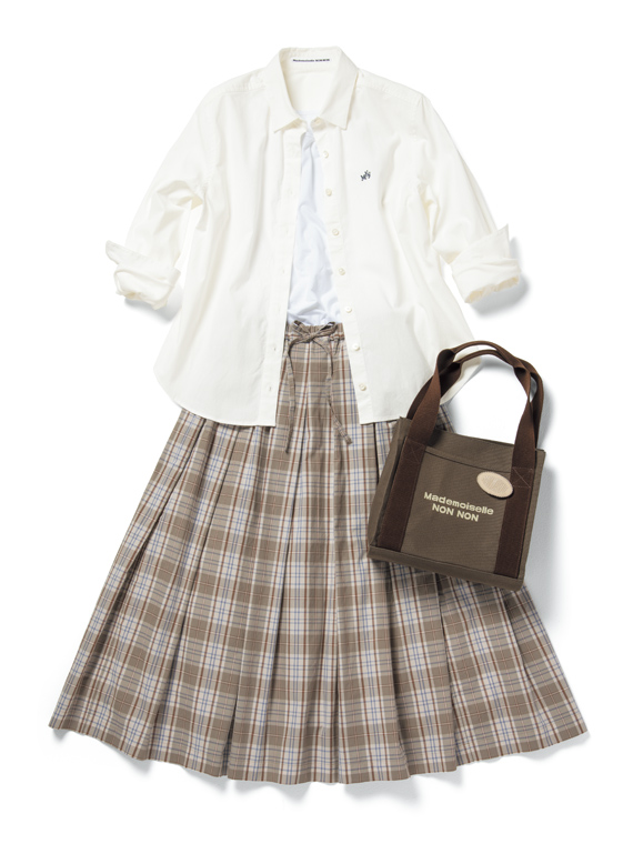 落ち着いた色味のチェック柄でカジュアルすぎず、上品なコーディネートに仕上がります。今の時期はTシャツに合わせてもすっきりお召しいただけて素敵です。