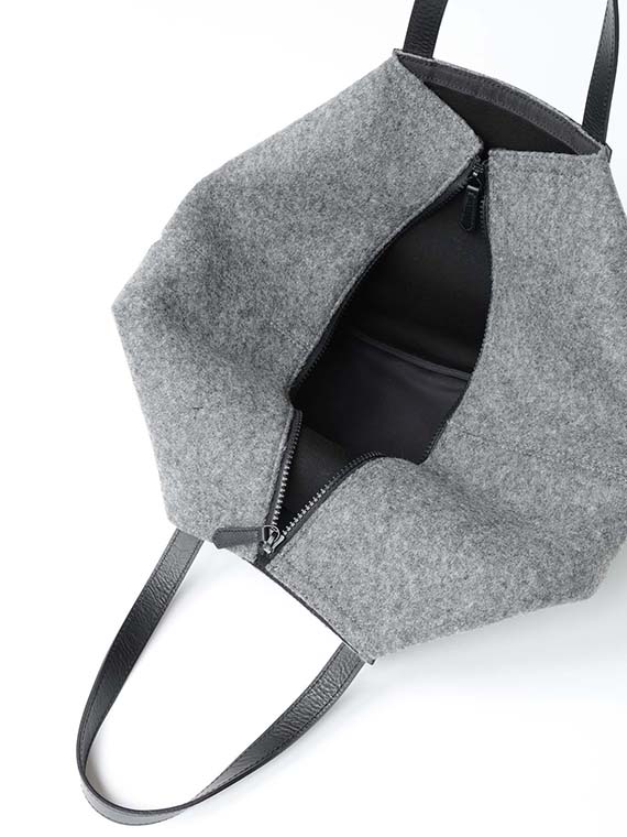 バッグの口はファスナーで開閉する形で、包み込むようにモノを入れることができ、安心感があります。