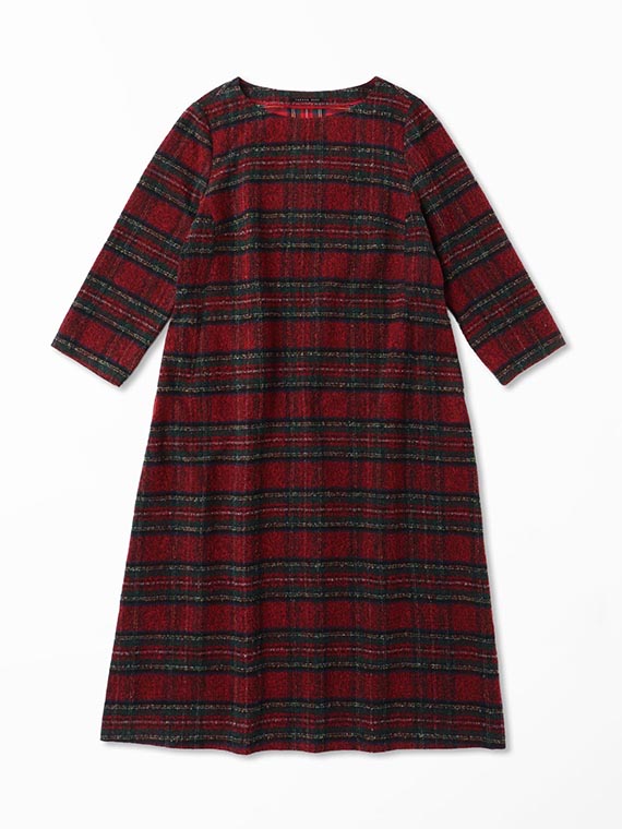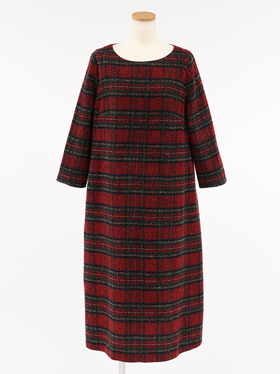 温かみのある見た目ながら非常に軽い、こだわりのオリジナル素材で仕立てたIラインシルエットのワンピースです。