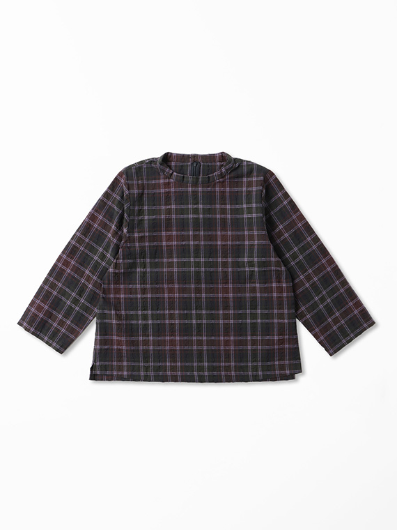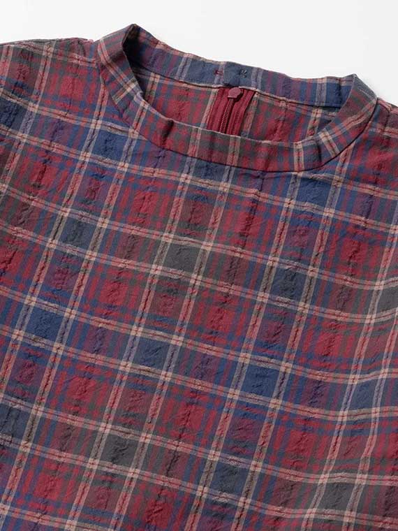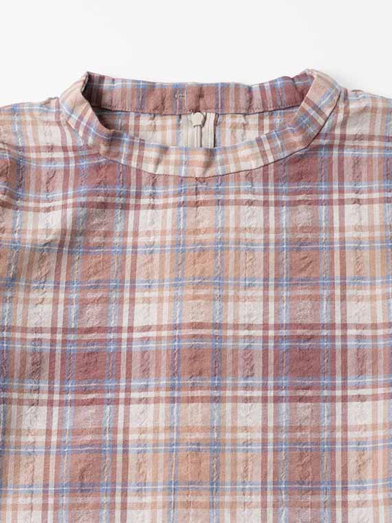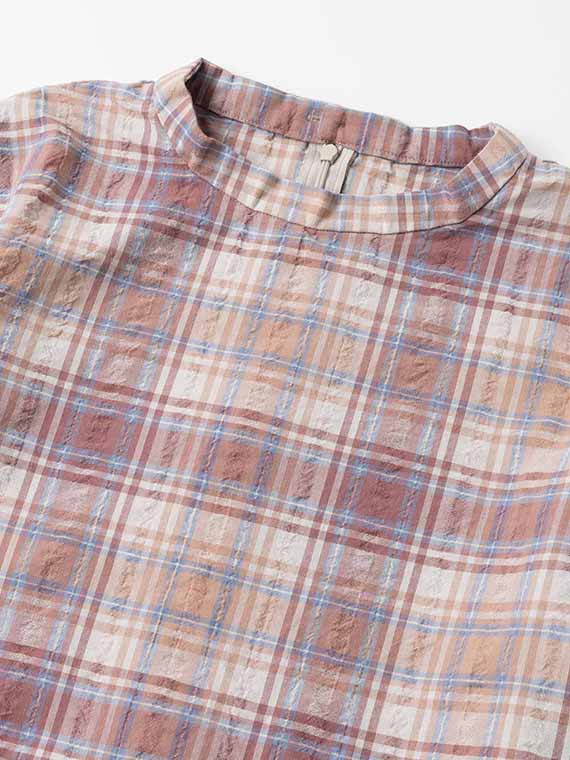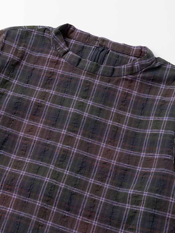 コットンドビーチェックワッシャー ボトルネックTブラウス