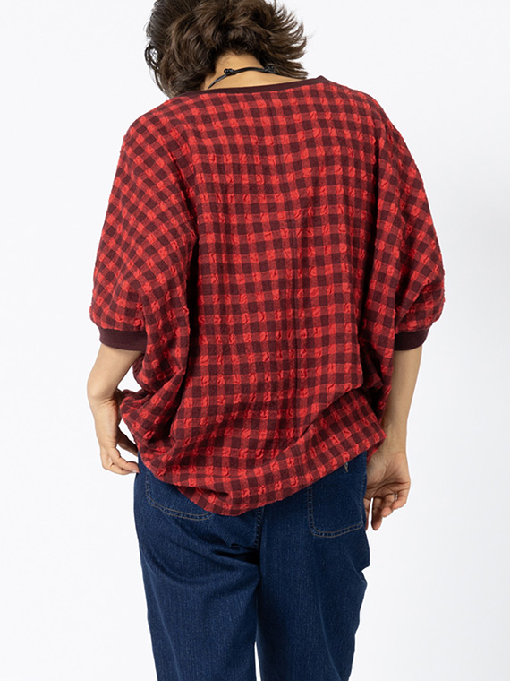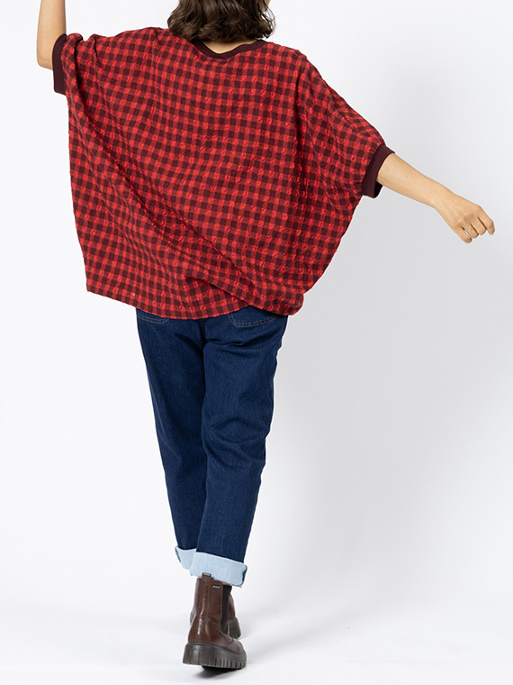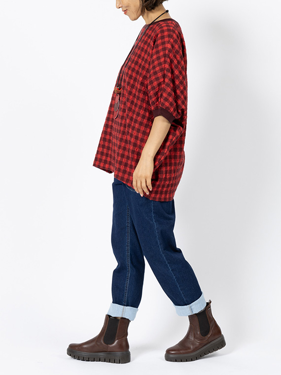 お洋服の中で身体がゆったりと泳ぐようなプルオーバータイプのブラウスです。