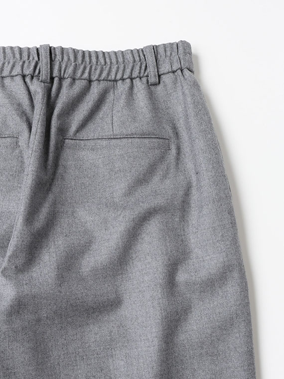 タテ・ヨコ糸ともにSUPER100'S原料の細番手2/72梳毛糸を使用して織り上げられたサキソニーストレッチ素材です。SUPER 100’Sを使用する事で比較的軽量で且つソフトな風合い、柔らかくウォーム感のある仕上がりとなっており、ヨコ糸にストレッチ性のある糸を使用する事で着心地の良さ・フィット感等の動き易さも実感できるオールマイティな秋冬の素材となっています。