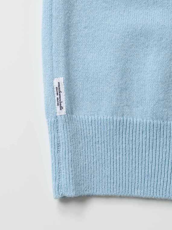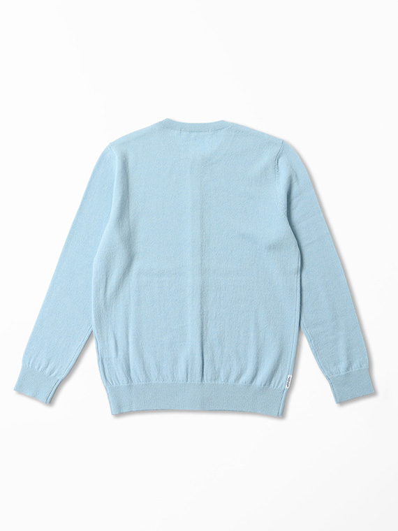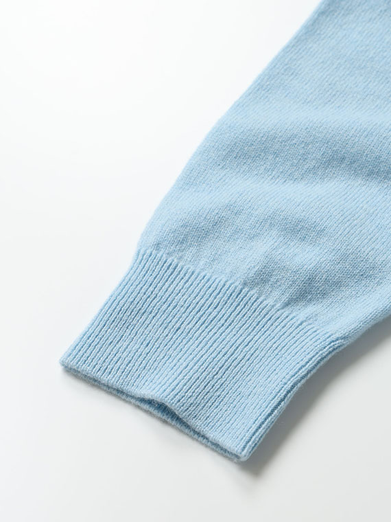 原毛調達力と紡績技術によって実現した、紡毛カシミア100%のSuper High Standard Yarnです。その最良原毛の繊度は15.00/15.50μ、繊維長は38/40mmとなり、この番手クラスでは最高レベルになります。また他のイタリア各社との違いは、その染色方法にもあります。全180色のStock Service Colorの全ての色、ソリッドカラー・TOP染め(綿染め)を行なっています。生産調整が行いやすいカセ染めを行わず、TOP染めを固守する理由は、色による番手変化(製品におけるサイズの不安定)、カセ染め工程中のダメージ(ピリングの起因要素)などを防止し、そして全色の風合いの統一を実現する為です。また、黒を始めとする濃色にはBrown Cashmereを使用することが常識ですが、CARIAGGIではBrownとGreyをブレンドして使用しています。これらTOP染め、Raw Materialの選別などのこだわりは、特に黒(Black)の風合いや物性に顕著に現れます。年間を通して長く着用していただける様に、この秋冬企画からゲージを8G⇨12Gへ変更しています。滑らかで柔らかな風合いとゲージを変更したことによる軽さ、気やすさが特徴です。