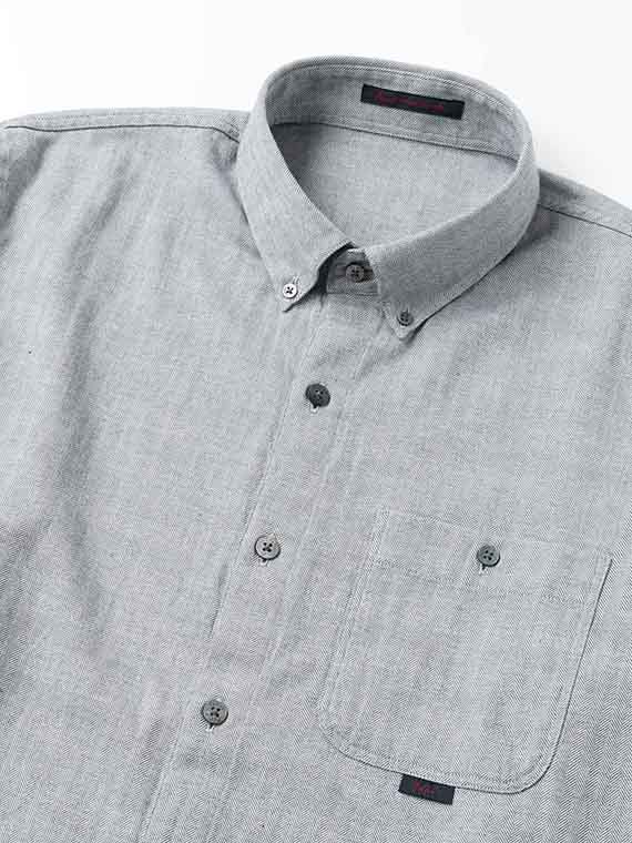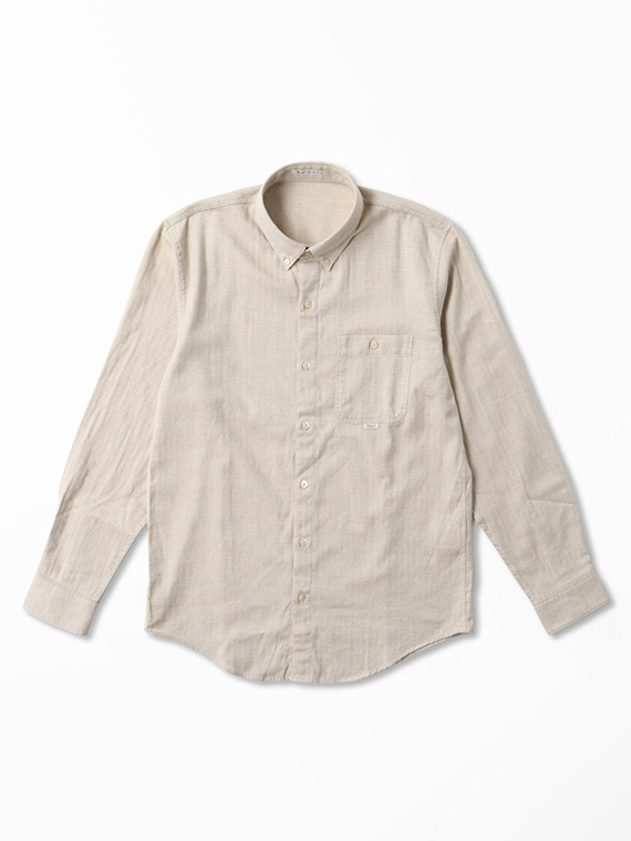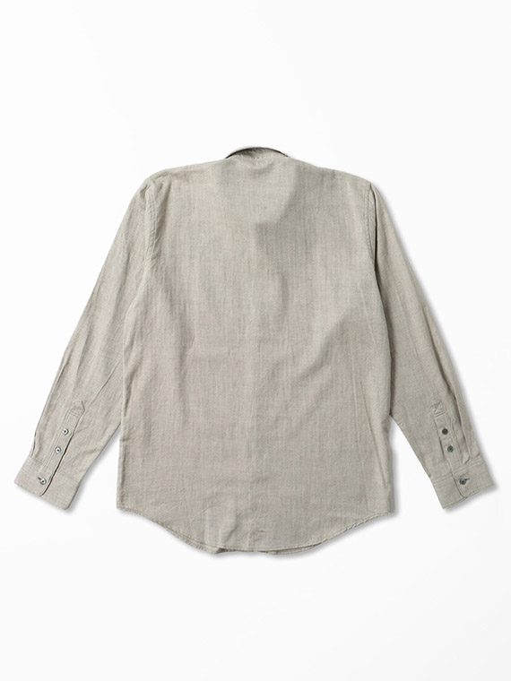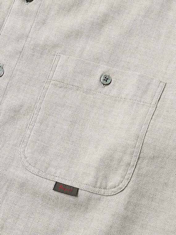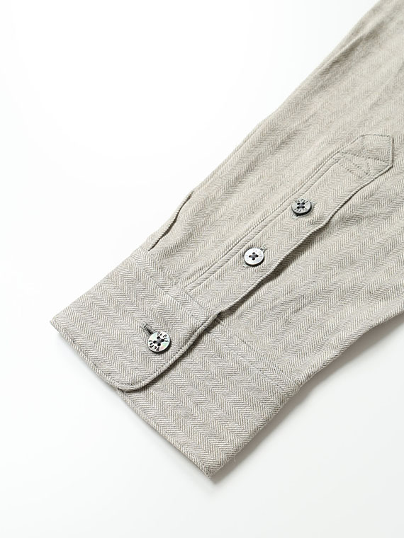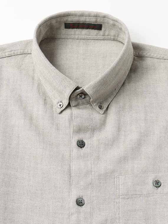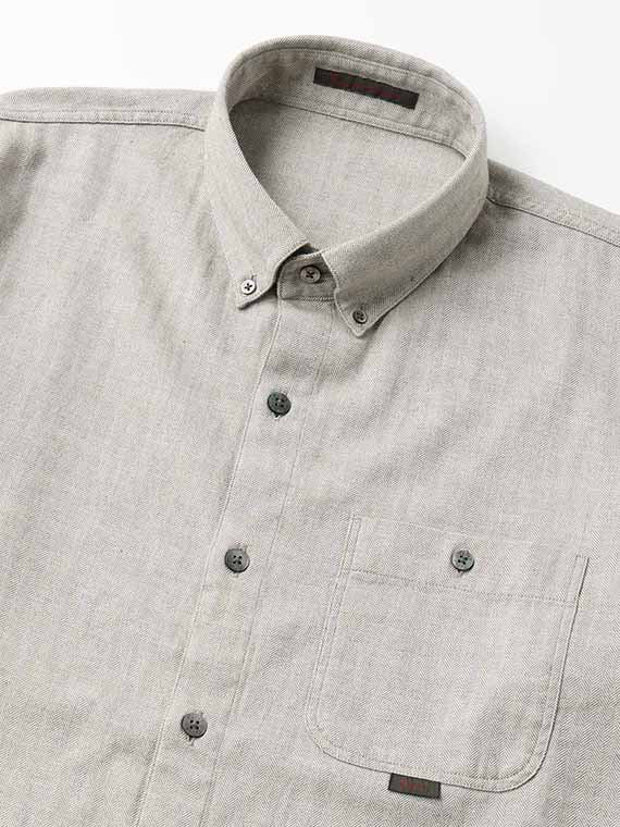 パパスを代表する綿麻素材《モンサンミッシェル》に、秋らしい魅力を加えた素材です。タテに40/2コットンとウールをブレンドした糸、ヨコに30/1超長綿のコットンをワタの段階で多色に染め、上質なベルギーリネンを職人の手で丁寧にブレンドした糸を使用したヘリボーンのシャツ素材です。