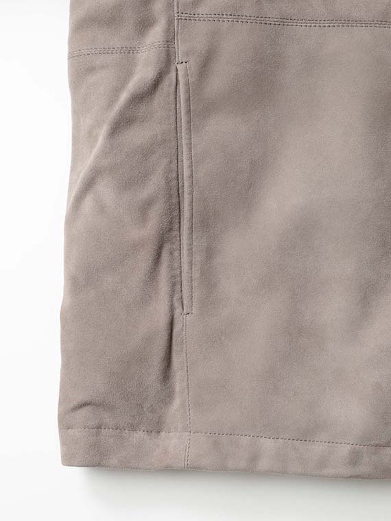 TURCO DELIはトルコのイズミールに位置する国内最大級のメティス革(Lamb x Goat mix)の工場で、TURCO社のメティス革は厳選された高品質の原料を使用しており、上質なスエード生地が最も有名です。メティスは羊と山羊の交配種で、羊の安定した版の大きさと山羊のきめ細かい質感の良いところを持ち、独特のしっとりとした柔らかいタッチと薄く仕上がり、且つ強度も兼ね備えているのが特徴です。組成表記は羊革となります。