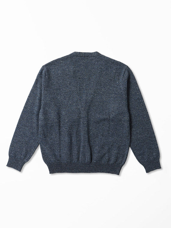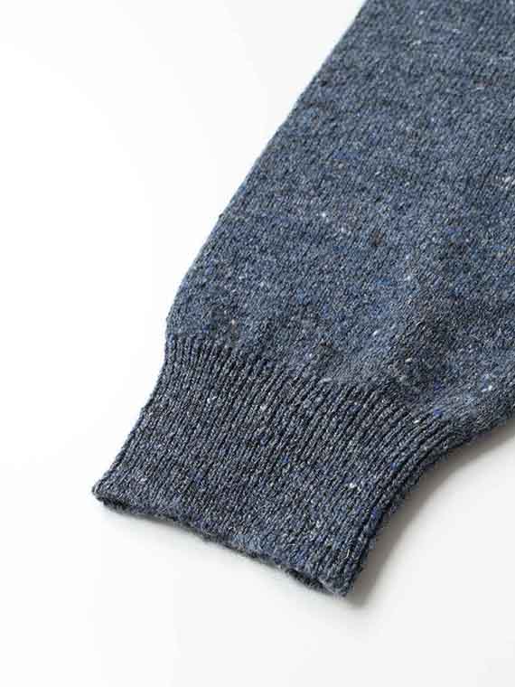 カシミヤウール混ナッピング糸とリネンウール混の糸を交撚しています。紡毛の膨らみ感、リネンウール(シェットランド混)の吸水、吸放湿、発散、速乾性などそれぞれの特徴を持ち合わせた魅力的な素材です。それぞれTOPカラーを撚り合わせているため、絶妙な色合いに仕上がりました。