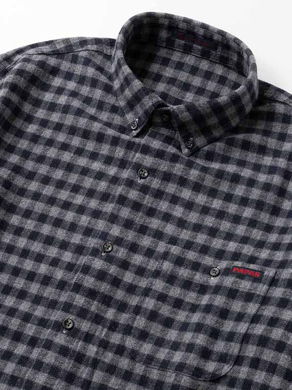 GIZAやスーピマなどの数種類の超長綿の落ち綿をミックスして紡績したコットンに、オーストラリア産のエクストラファインメリノをブレンドした糸「プレミアムウールラフィ」を使用しています。エクストラファインメリノには防縮加工が施されていますので、クリーニング後の風合いの変化なども少なくいつまでもふっくらとした風合いをお楽しみいただけます。上質なウールのフラノのような贅沢な一枚です。