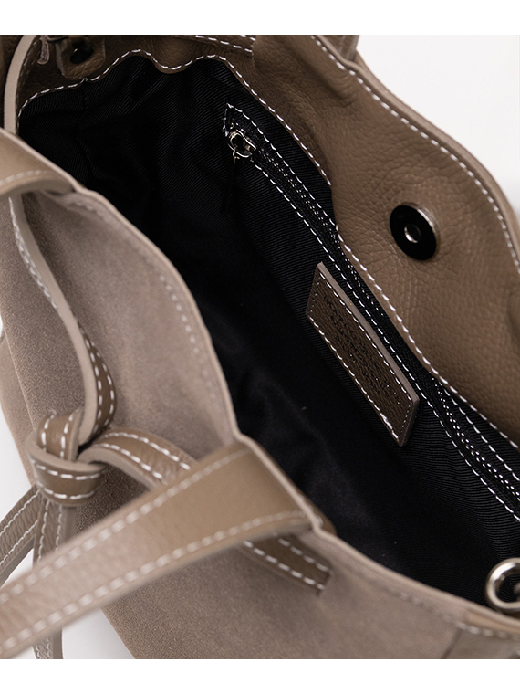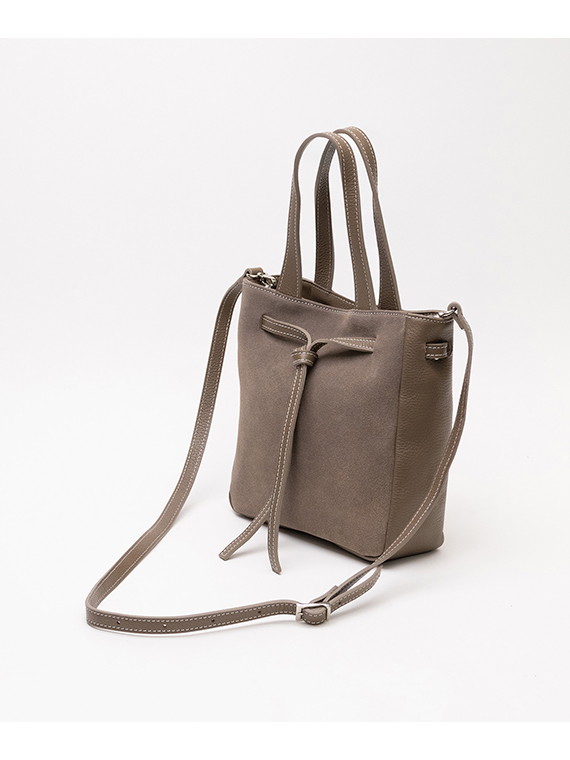 シックなカラーとスエード×レザーで表情のあるバッグです。