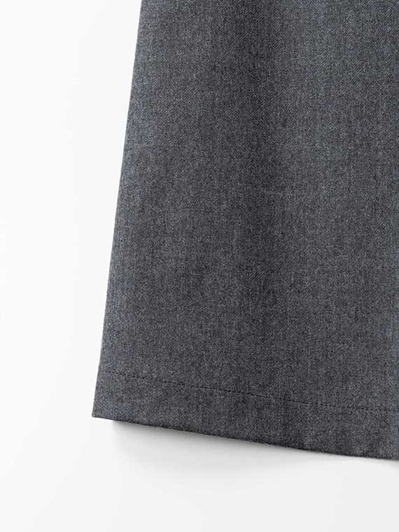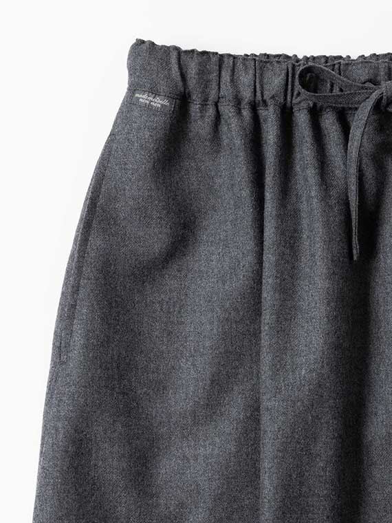 すっきりきれいめにお召しいただけます。こちらは日本最大の毛織物産地として知られる尾州にて製織、生地染色、整理、特殊加工を行っております。同素材を使用したノータックパンツンもございます。