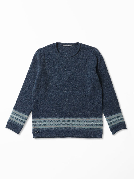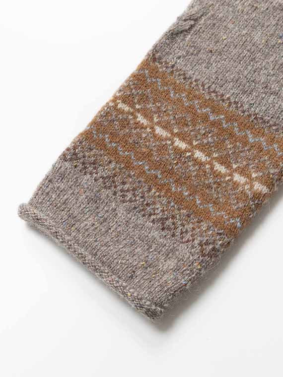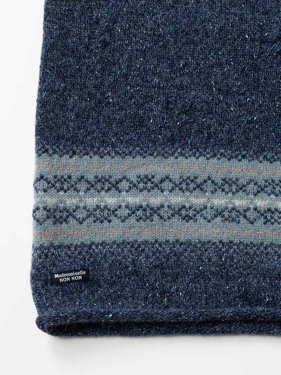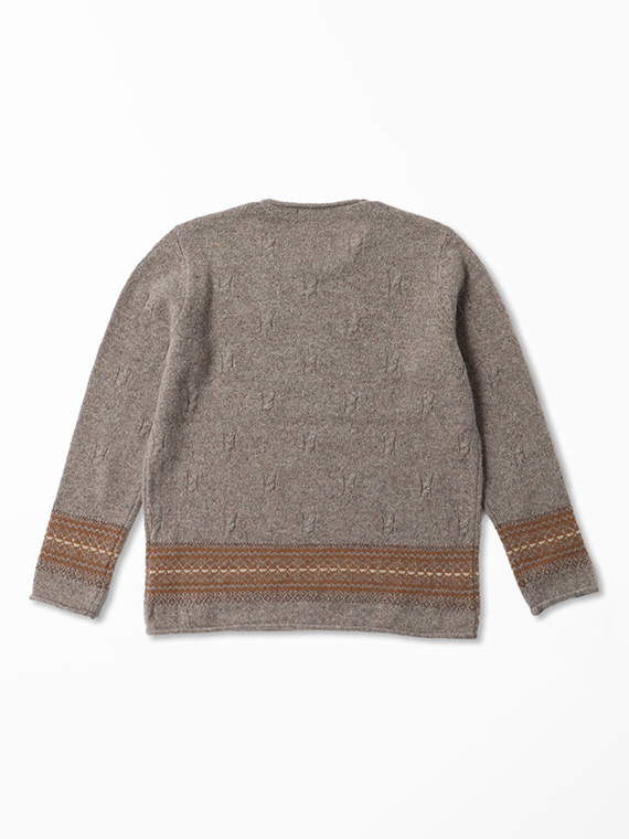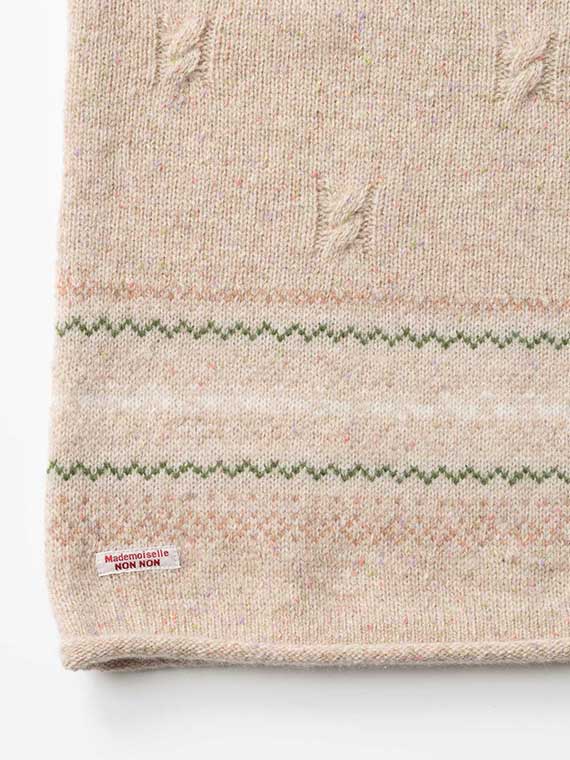 ※見頃・袖に「飛びケーブル」、袖口/裾に「ジャガード柄編み+ロール」