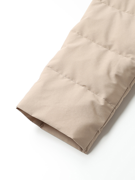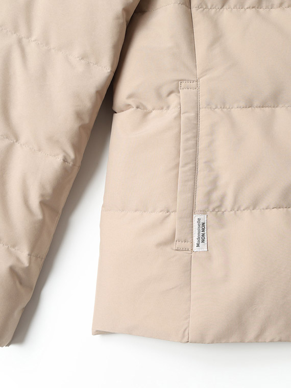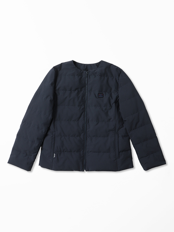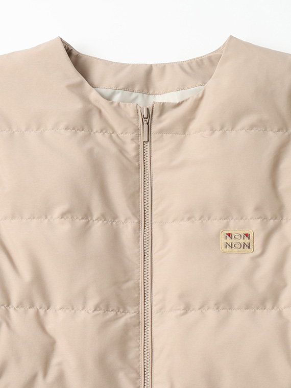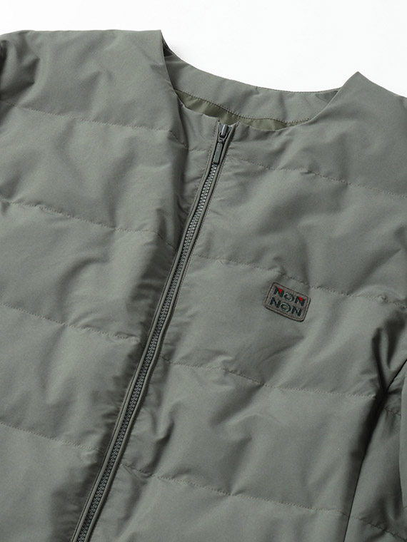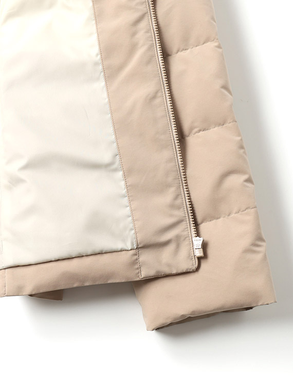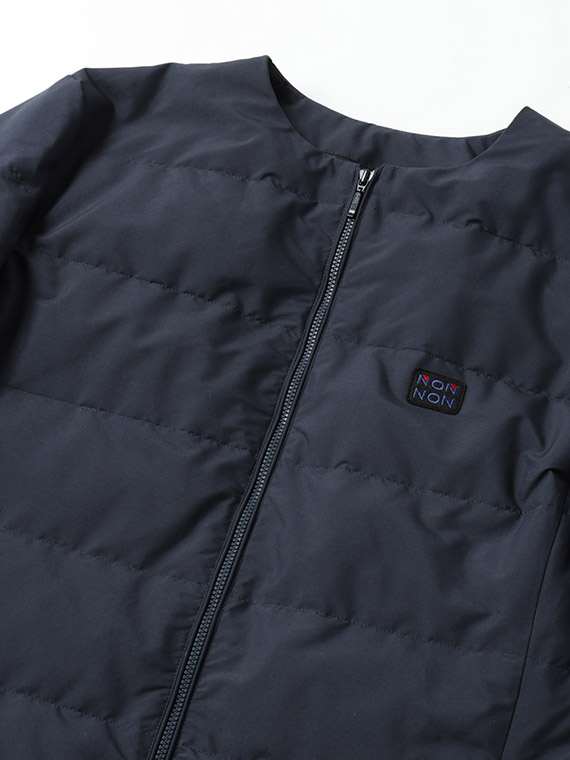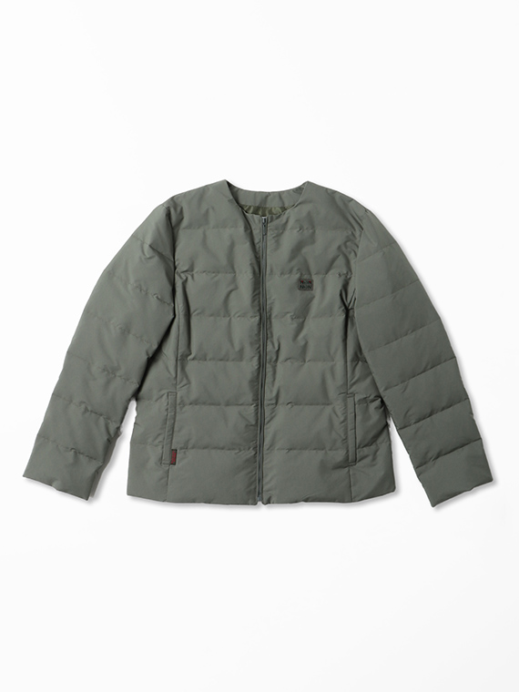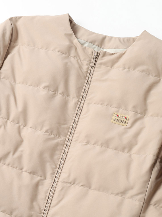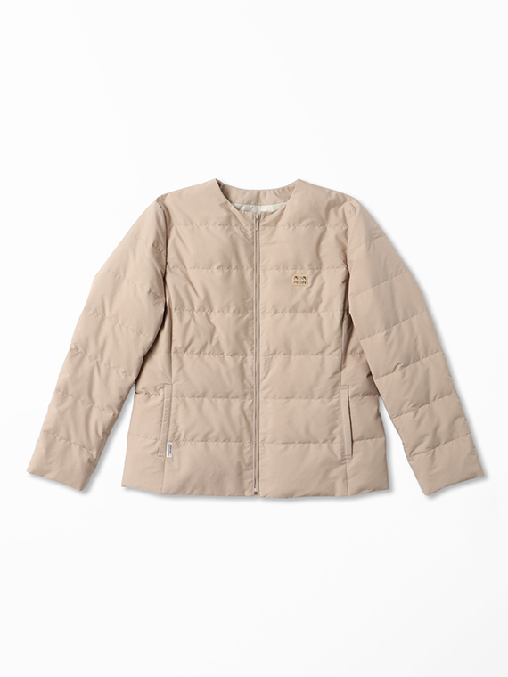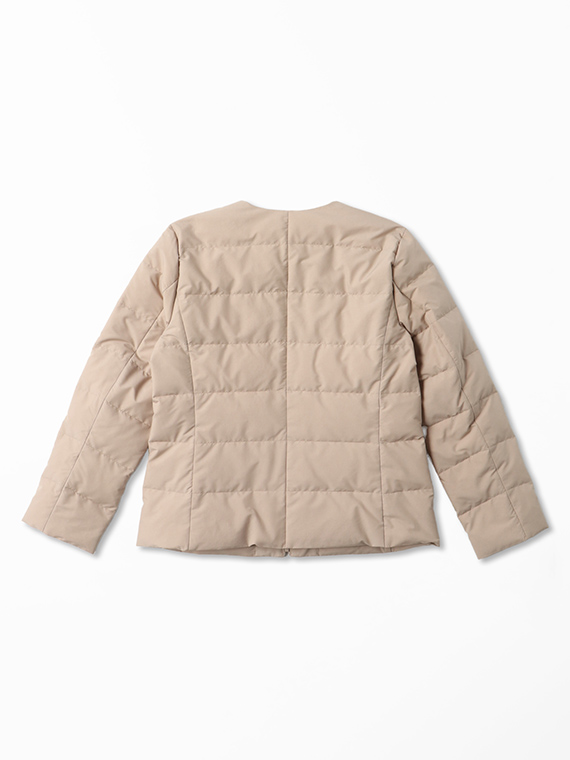 ダウンですが、ノーカラーですっきりとお召しいただけます。お好きなマフラーやストールでコーディネートをお楽しみください。