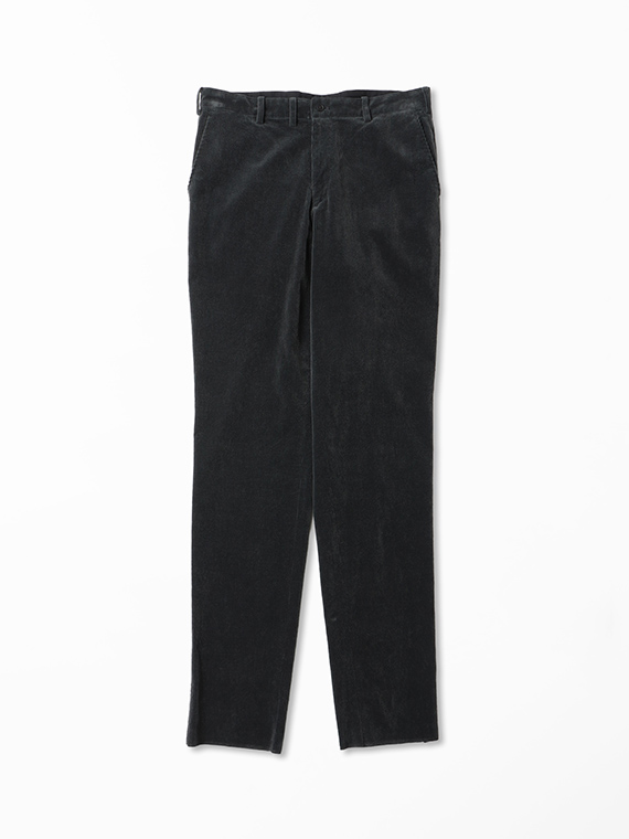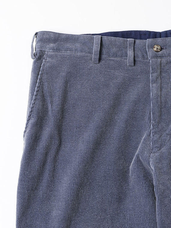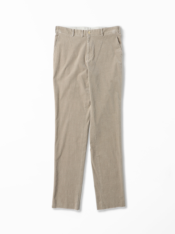 コットン/カシミヤ混ストレッチ中コール ノータックパンツ