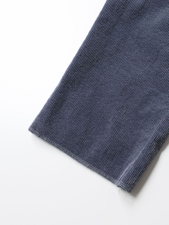 タテに80/2シーアイランドピマ綿糸、ヨコに40/1綿カシミヤ(70/30%)ブレンド糸とストレッチ糸の40/1CSYを組み合わせて織り上げたストレッチコーデュロイです。PAPASでは秋冬の定番的なカシミヤ混コーデュロイ素材ですが、カシミヤと組み合わせる綿については、毎年原料の良い超長綿を選定しており、近年ではシーアイランドピマを原料にして作成しています。