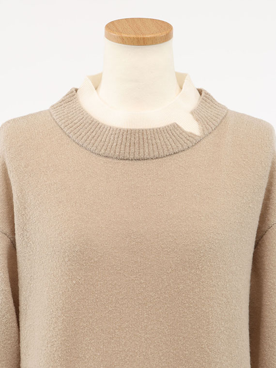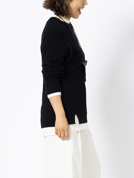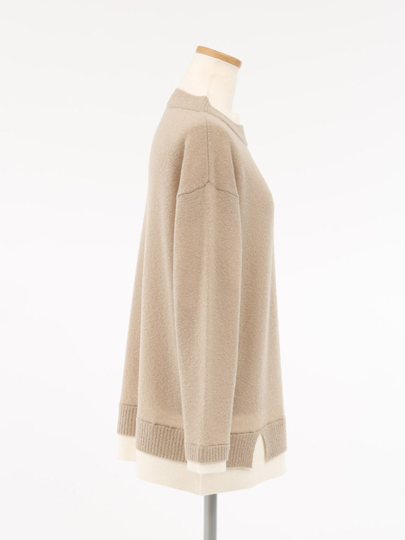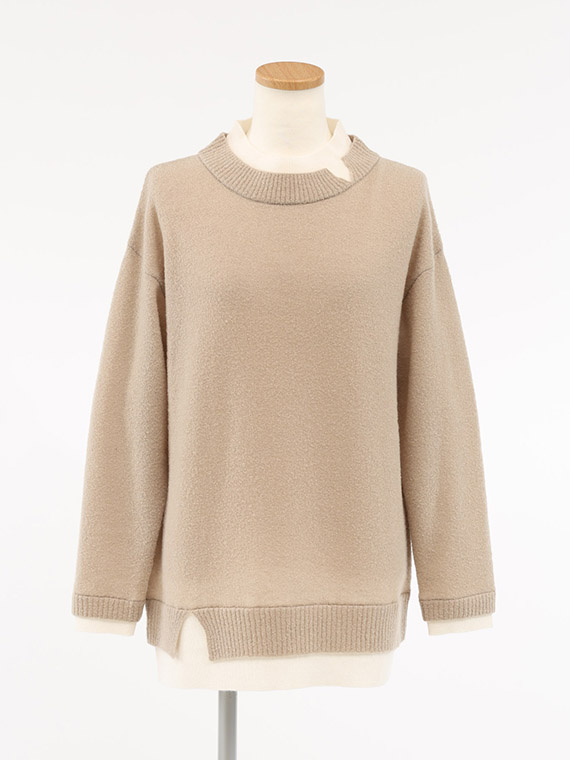 ブークレ糸を天竺編みして、ソフトで表情感のあるふくらみを出した素材です。