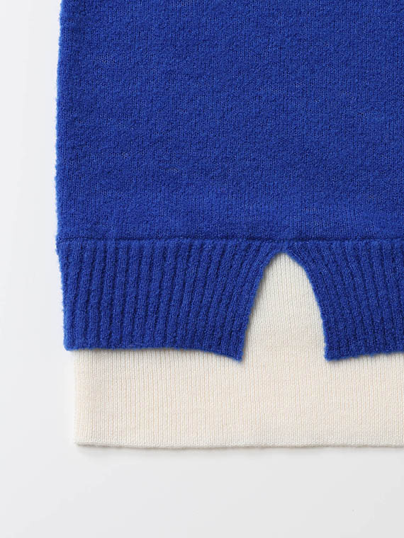 衿ぐり、裾はスリットを入れて、ちらっとのぞくカラーをさらに強調しました。