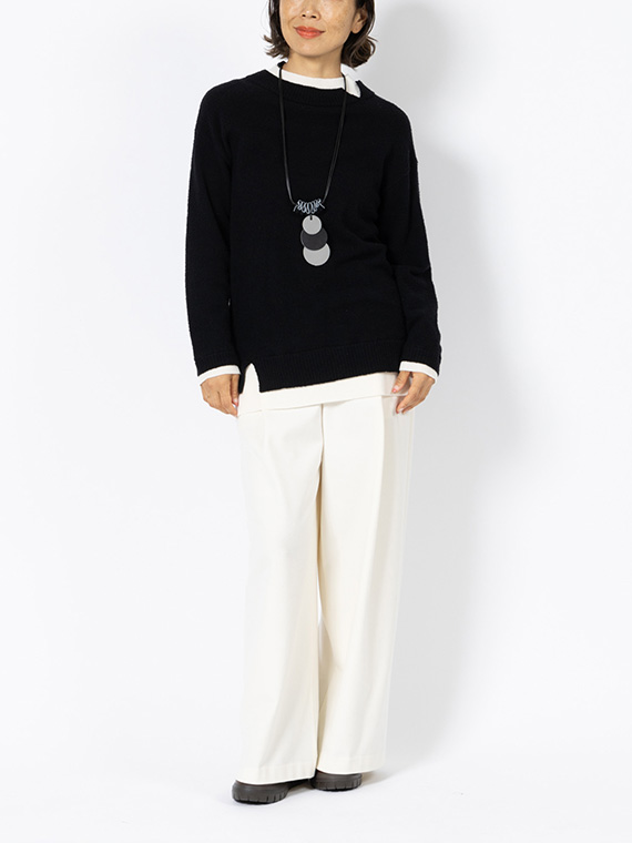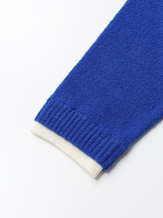 編むことで表面に糸の輪っかが出てモコモコとした肌ざわりや見た目になり、フェミニンで暖かな印象がある素材です。