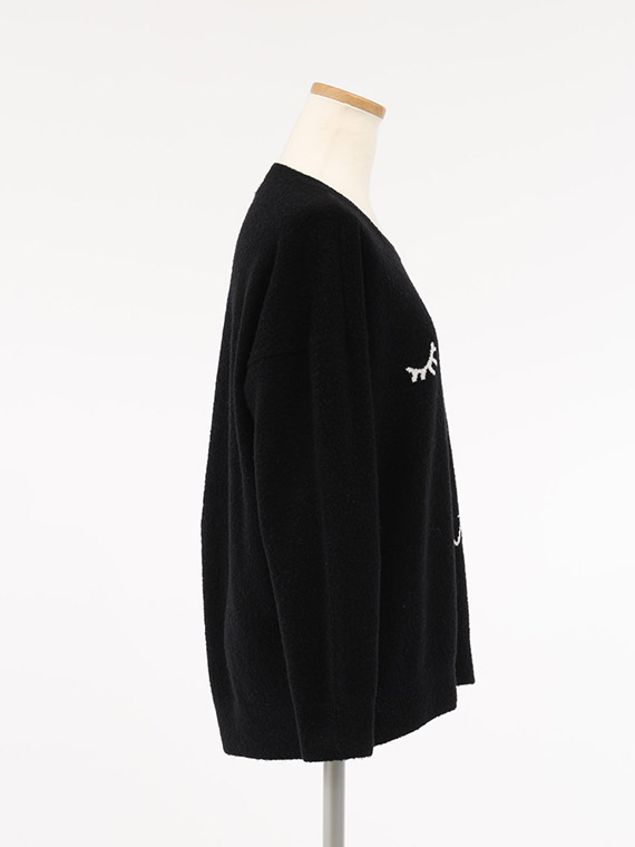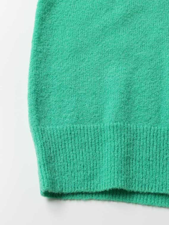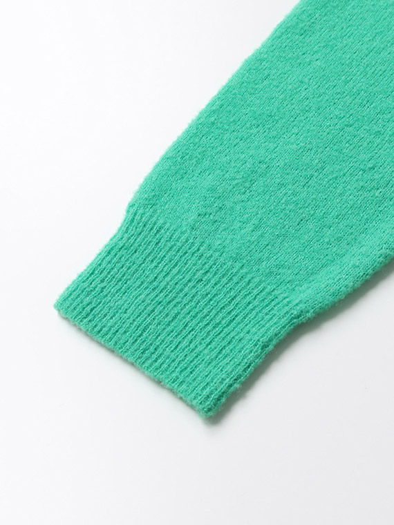 編むことで表面に糸の輪っかが出てモコモコとした肌ざわりや見た目になり、フェミニンで暖かな印象がある素材です。