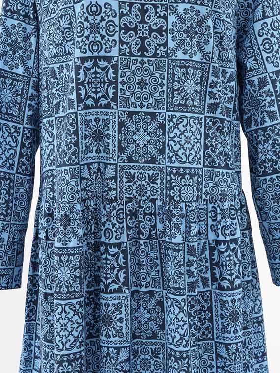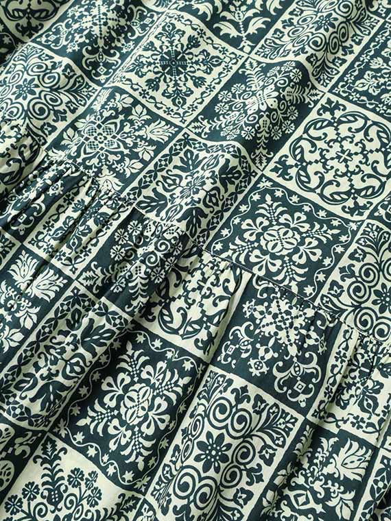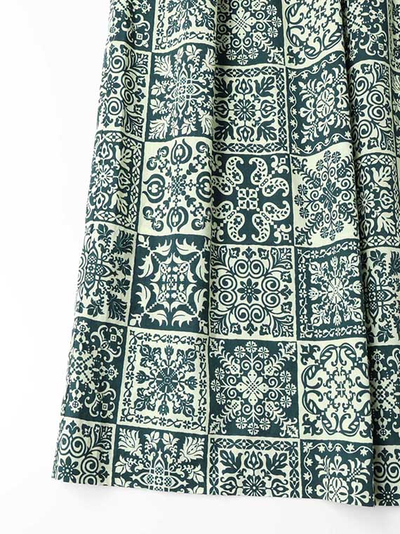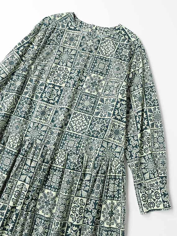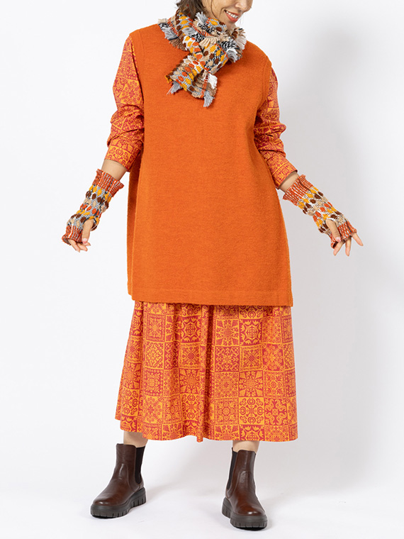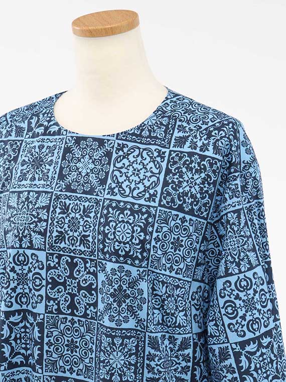パッチワークのような、タイルのような、さまざまなノルディック模様のプリントが楽しい雰囲気を演出します。