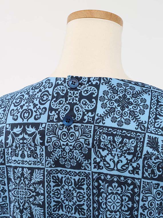 後ろ首元にボタン2ヶの開きがあり、脱ぎ着するときにもストレスがありません。