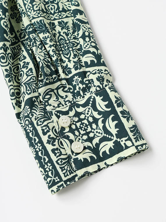 インクジェットプリントとは柄をコンピューターで画像処理し、プリンターから生地に直接捺染し、蒸気と熱で発色させるプリント手法です。