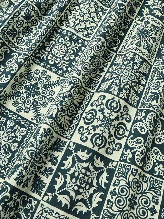 ソフトな肌ざわりのコットン100%のローン生地をベースとして、パッチワークしたような16個ものノルディックパターンをインクジェットプリントしたピッチュンオリジナルの素材です。