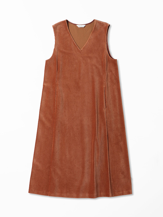 身頃をパネル化して細腹をいれるパターンにより、身体のラインを拾わないとてもきれいな形に仕上げました。