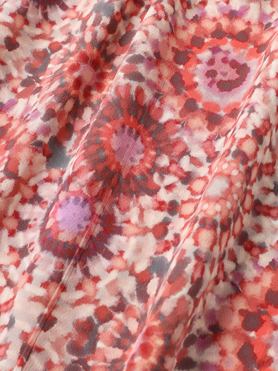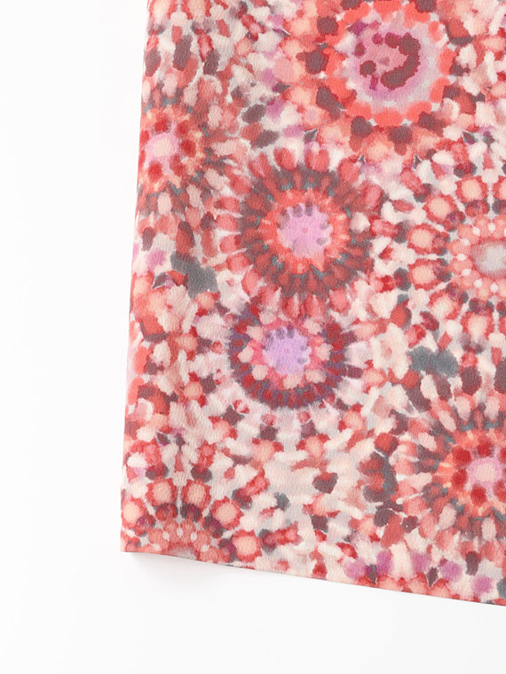 微妙なシボ(表面感)と上品な光沢のあるソフトなクレープデシンに、水彩画風なモザイク柄をインクジェットプリントしたタバサオリジナルのフランス製のプリント素材です。